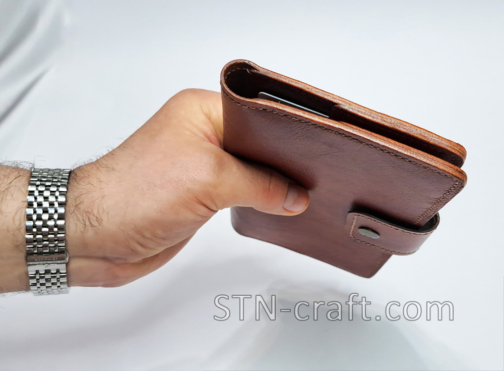 У складі: відділень для купюр – 2, відділень для карток – 5, можливість вкладати документи, квитки та ін. Закривається на міцну кнопку так, що можна всередину вільно вкласти телефон.